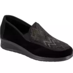 Le chausson Bruman BR3271B est un mocassin femme, extensible à l'avant, à grande ouverture, réglage sur les cotés du pied par bande élastique, avec un bon maintien. Il est idéal en cas de polyarthrite, diabète, hallux valgus ou hémiplègie.