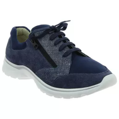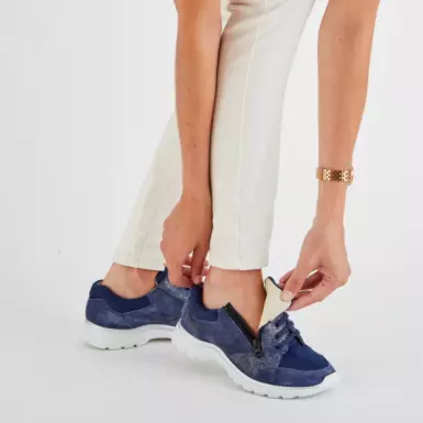 La basket Podowell MARTA bleu est une basket incontournable : sa texture bi-matière et ses paillettes mettront du peps dans vos tenues. Adaptée à de nombreuses pathologies de l'avant-pied, elle vous apportera style et confort au quotidien, notamment grâce à son insert de gel placé sous les métatarses de façon à soulager les douleurs plantaires. La basket Marta est facile à chausser avec son zip et à ajuster grâce aux lacets. La semelle légère et agrippante apporte un grand confort de marche.