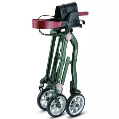 Le Trive d’Uplivin a un double pliage. Cela signifie que vous pouvez plier le Trive à la fois en longueur et en largeur. Pour cette raison, le déambulateur est très facile à ranger, même dans les plus petits espaces. Vous pliez le déambulateur facilement d’une main en soulevant le siège. En outre, le Trive se déplie tout aussi facilement à nouveau quand vous êtes prêt à repartir avec votre déambulateur