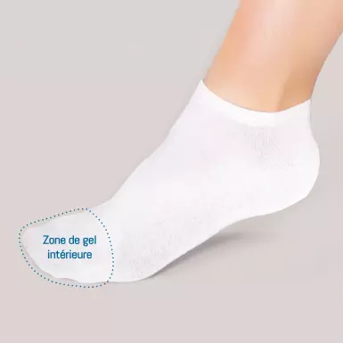Porter la chaussette de manière à avoir la surface de gel en contact direct avec la peau. Les orteils seront alors protégés des frottements.