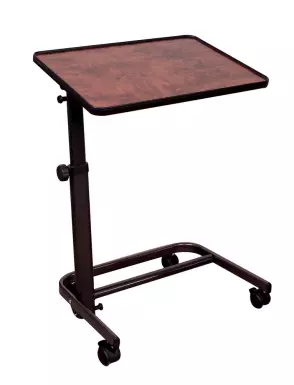 La table à roulettes Diffusion peut être utilisée aussi bien au lit qu'au fauteuil grâce à son ingénieux système d'inclinaison et son mat télescopique. En effet, la table Diffusion possède deux réglages :